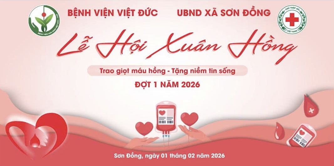 * Thực hiện Kế hoạch số 27/KH-UBND ngày 20/01/2026 của UBND xã Sơn Đồng về việc tổ chức phong trào hiến máu tình nguyện (đợt 1) năm 2026 trên địa bàn xã Sơn Đồng, Ban chỉ đạo hiến máu tình nguyện xã Sơn Đồng phối hợp Bệnh viện Hữu nghị Việt Đức tổ chức chương trình hiến máu tình nguyện: